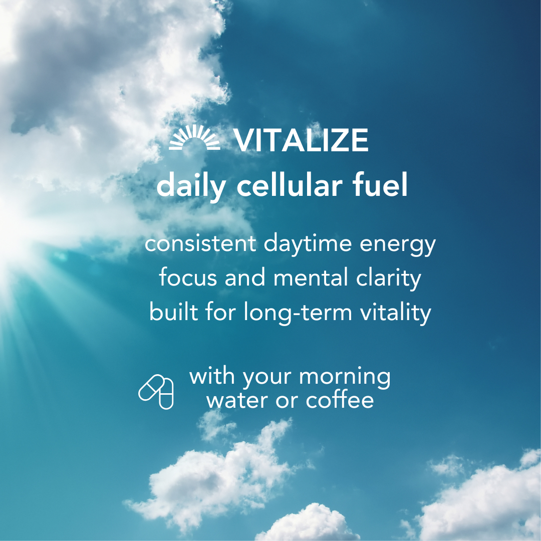 Morning VITALIZE supports the NAD⁺ cycle and daytime defenses ahead of demand.